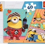 Vidám MINIONS motívumú puzzle gyerekeknek, 60 darabbal, amely kirakva 330 × 220 mm méretű képet alkot. Magas minőségű és környezetbarát anyagokból készült Lengyelországban, speciális kalanderezett papírral az egyszerűbb kirakáshoz.