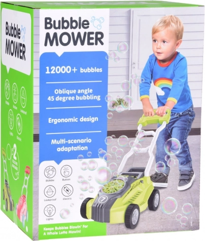 A szórakozás elkezdése nagyon egyszerű – csak töltsd fel a tartályt szappanbuborék-folyadékkal, és a gomb megnyomásával indítsd el a fűnyírót. Ennek eredményeként gyönyörű szappanbuborékok szállnak gyorsan a levegőbe, szétoszlanak a környezetben, és varázslatos hangulatot teremtenek.