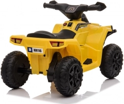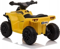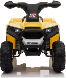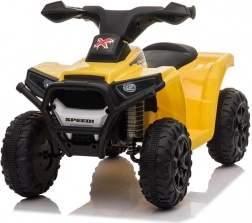 Stílusos, akkumulátoros gyermek quad energikus sárga színben, amely hosszú órákon át szórakoztat beltéren és a szabadban. A masszív kerekeknek, a kormányról történő könnyű irányításnak és a tartós műanyag felépítésnek köszönhetően ideális a kis kezdő versenyzők első útjaihoz. A valósághű első fényszórók és a sportos megjelenés serkentik a fantáziát és fokozzák a vezetés élményét.