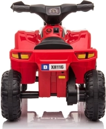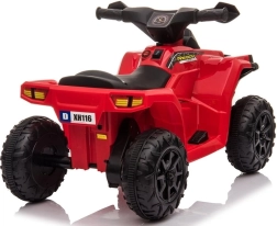 A XH116 gyermek elektromos quad remek választás azoknak a gyerekeknek, akik szeretik a mozgást és a kalandot. Erős műanyag felépítés, feltűnő piros dizájn és élethű elemek, mint a kormány és az első maszk, amelyek serkentik a fantáziát, és szórakoztató játékot kínálnak kint és bent egyaránt.