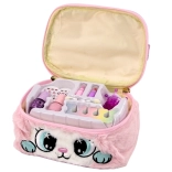 .A bájos kozmetikai táskában található sminkkészlet minden kis smink- és szépségrajongó álma. A puha, plüss anyagból készült, pasztell rózsaszín árnyalatú, cicamotívumos kozmetikai táska nemcsak praktikus, hanem varázslatos hely a szépségápolási kincseknek.