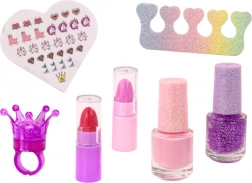 Két körömlakk, matricák, ujjseparator, ecset és mini rúzsok segítik a finommotorikát és a fantáziát a biztonságos játék során.