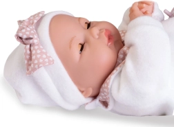 Realista pislogó baba újszülött Antonio Juan, amely szereti a gyerekjátékokat. Ez a baba hangokat ad ki, puha textil teste és részletes kidolgozása ideális játékot jelent ápolási képességek fejlesztésére.