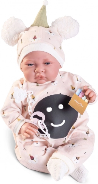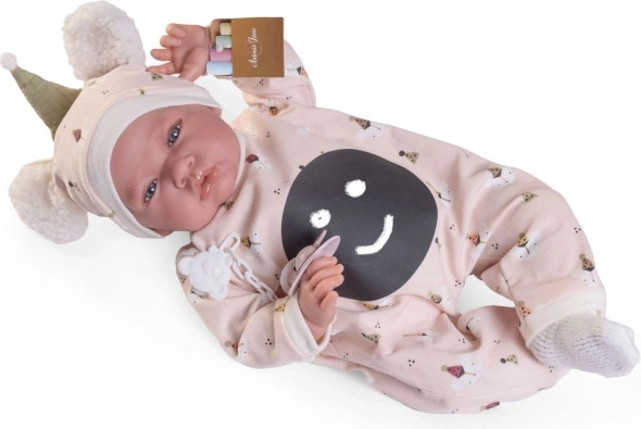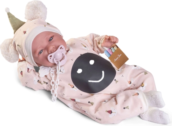Kézzel készített spanyol baba az Antonio Juan márkától, amely valósághűen kidolgozott arcrészleteket és ízületes végtagokat hoz, amelyek lehetővé teszik a különböző pózokat, beleértve az önálló ülést. Puha textil teste biztosít kellemes ölelést és komfortot a játék során.