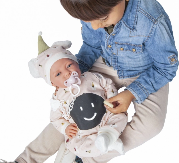 A baba realisztikus arcvonásokkal és lágyított vinil ízületes végtagokkal rendelkezik, amelyek lehetővé teszik a különböző pozicionálást.