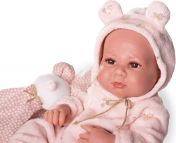 A lágyított vinil tartós és könnyen tisztítható. A baba fürdethető – ügyeljen arra, hogy a szempillák ne ázzanak el.