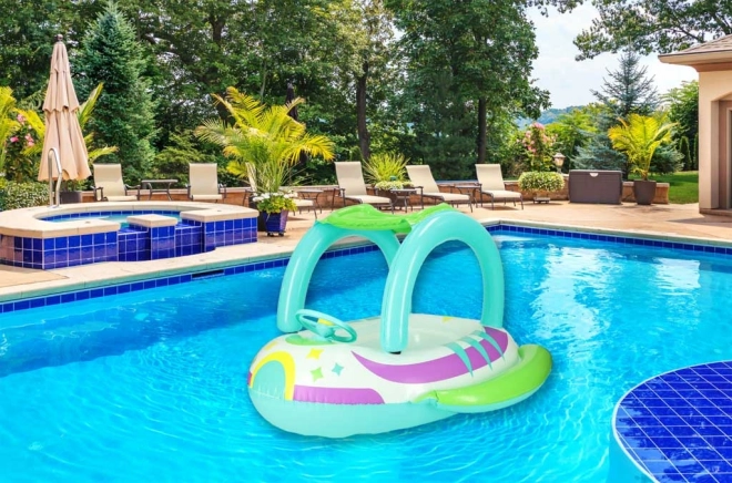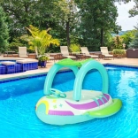 A praktikus tető véd a napsütéstől, így hosszabb és biztonságosabb vízi játékot tesz lehetővé túlmelegedés nélkül.