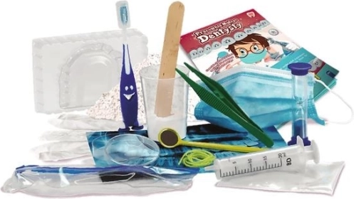 A Kis fogorvos készlet ötvözi a szórakozást és az oktatást. A gyerekek megismerik a fogorvosi eszközöket, megtudják, hány foga van egy gyermeknek és egy felnőttnek, valamint elsajátítják a helyes fogápolási szokásokat. A homokóranak köszönhetően könnyen megtanulják, meddig kell megfelelően fogat mosni, a fogorvosi tükörrel pedig felfedezhetik a mosolyukat.