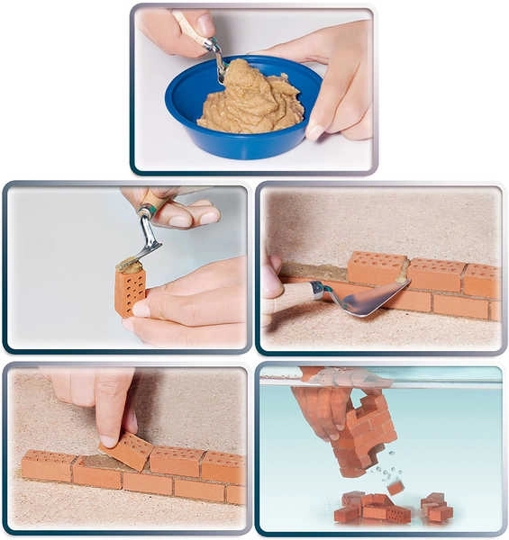 - Az építőkészlet újra felhasználható - csak áztassuk szét az építményt, szárítsuk meg és kezdjük újra.