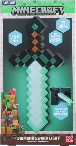 Hozzon játékos hangulatot otthonába ezzel a Minecraft Gyémánt Kard Fénnyel. Ez a világító kard három különféle világítási módot kínál: folyamatos fény, átmenet és zene által reaktív mód. Remek esti szórakozásra vagy stílusos Minecraft dekorációként. 40 cm magas, könnyen elhelyezhető asztalon vagy falra szerelhető.