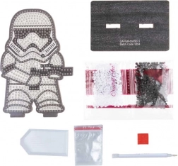 Ez a STAR WARS stílusú kreatív gyémántfestő készlet minden pihenőpillanatot kellemes tevékenységgé varázsol. Az eljárás egyszerű – az applikáló toll segítségével egyesével viszed fel a kövecskéket az előrenyomtatott, jelölt helyekre, és lépésről lépésre áll össze a legendás Rohamosztagos csillogó motívuma.