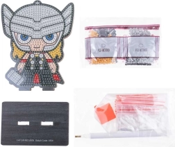 Minden szükséges elemet megtalálsz a csomagban: applikáló toll, viasz, tálka, színes kövek készlete, figuraalap és állvány. A kész figura remek asztali vagy polcdísz, ajándék Avengers-rajongóknak, vagy első lépés a gyémántfestés világába.