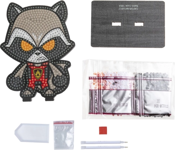 Ezzel a fantasztikus kreatív készlettel a Marvel rajongók elkészíthetik ragyogó képüket a Galaxis Őrzői filmsorozatból ismert Rockettel. A készlet mindent tartalmaz, ami szükséges egy 12 x 19 x 1,5 cm-es kép elkészítéséhez, ami ideális a gyerekek finommotorikus készségeinek fejlesztéséhez.