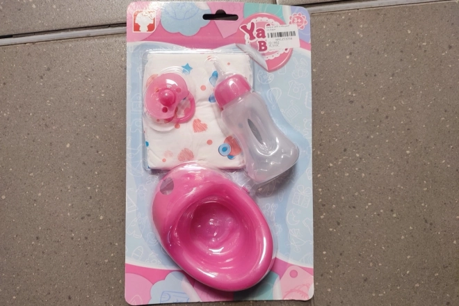 Ez a játékbaba kiegészítők készlet tartalmaz bilit, cumisüveget, cumit és egy pelenkát, ideális minden 3 év feletti fiatal gondozónak.