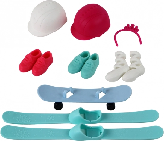 A baba síruhát visel fehér sisakkal, fehér téli csizmával, lécekkel és botokkal. De ez még nem minden! A szett része továbbá egy balerina jelmez (lila ruha rózsaszín tüllszoknyával, rózsaszín hajgumi és fehér balettcipők), egy gördeszkás öltözet (kék gördeszka, sárga hosszú ujjú felső, kék nadrág, rózsaszín sisak és rózsaszín sportcipők), valamint egy jógaszett (kényelmes narancssárga nadrág, színes rövid ujjú felső és mentaszínű sportcipők).