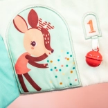 Minden egy csengővel kezdődik, amely megcsendülve egy apró meglepetést tár fel – megjelenik Stella. Ne feledkezzünk meg a kis zümögő méhecskéről, amely a házikó körül repked, valamint más interaktív elemekről, mint a tükör és a bevarrt csörgők, amelyek még élvezetesebbé teszik a játékot.