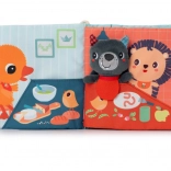 Ez a puha textilkönyv Ludvig farkas történetén vezeti végig a gyerekeket, aki meglátogatja barátait, megkóstolja finomságaikat, és megtanulja helyesen fogni a kanalat. A beépített ujjbábnak köszönhetően a gyerekek könnyedén eljátszhatják saját jeleneteiket, erősítve a fantáziát és a kommunikációs készségeket.