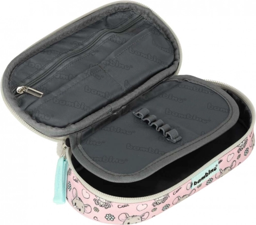 A belső elrendezést egy mozgatható fül gumipántokkal az írószerekhez, egy cipzáras zseb az apróságoknak és további két rekesz alkotja a tökéletes rend érdekében. A dupla cipzár ergonomikus húzókkal a gyerekek számára is megkönnyíti a nyitást. A stílust a szőrös állatmotívum és a nyomott bélés teszi teljessé.
