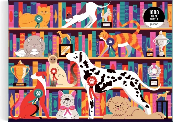 Galison Puzzle Mazlicsik a kiállításon szórakozást nyújt az egész családnak kiállítási kutyák és macskák motívumával, 1000 darabból álló puzzle formájában. Élvezze a logikai gondolkodás és motorikus készségek fejlesztését ezzel a színes kihívással.
