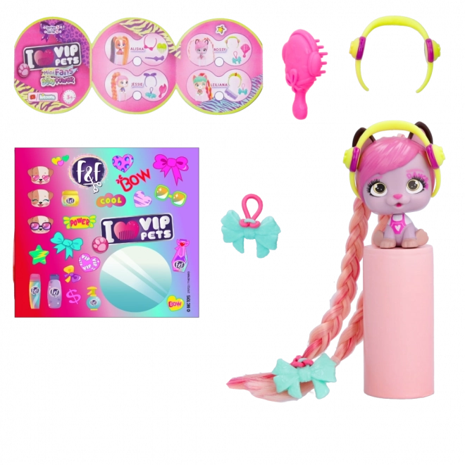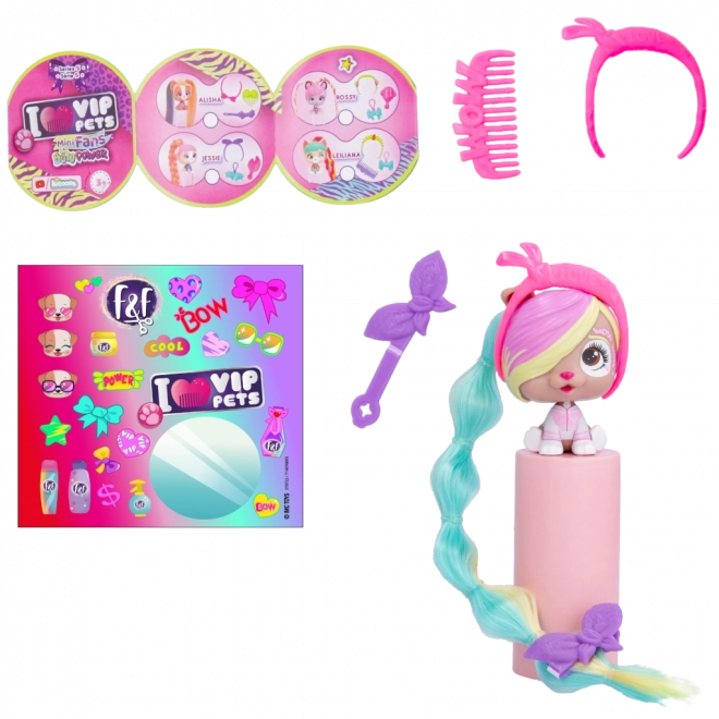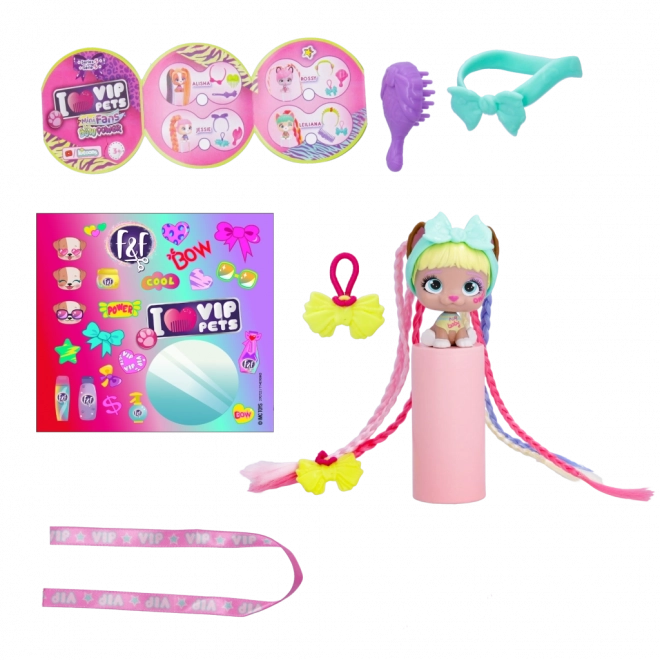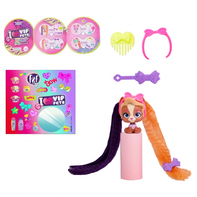 A VIP Pets Mini Fans Bow Power kollekció 8 különböző mini kölyökkutyát kínál, mindegyik teljesen egyedi hajkiegészítőkkel. Ezek a bájos kölykök követik a legújabb, Bow Power trendet. A csomag tartalma: