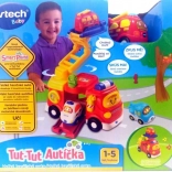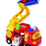 Nagy Tut Tut tűzoltóautó remek szórakozást kínál a legkisebbeknek. A készlet része egy egyedi tűzoltó kisautó, amely számtalan izgalmas játékélményt nyújt a gyerekeknek. Az autó létrával felemelhető és mentőakcióra küldhető.