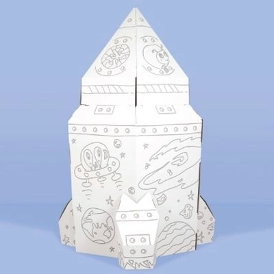 Ez a nagy karton űrrakéta az összeszerelés után látványos játékelemmé válik, amely ösztönzi a fantáziát és a kreatív játékot. Robusztus kartonkivitelének köszönhetően könnyű és egyszerűen mozgatható.