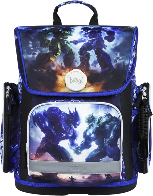 A Baagl Ergo Robotok iskolai szett az ergonómiát, a biztonságot és a stílust ötvözi. A megerősített szerkezetű aktatáska állítható hátpanellel együtt nő a gyermekkel, és alkalmazkodik a magasságához. A Fidlock mágneses zárnak köszönhetően kesztyűben is könnyen kezelhető, és automatikusan záródik. A körbefutó fényvisszaverő elemek szürkületben is növelik a láthatóságot, míg a masszív alj stabil formát tart.