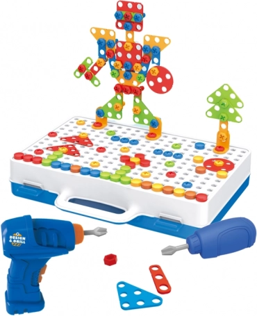 A készlet 248 részből áll, beleértve az akkumulátoros fúrót, amellyel darabokat lehet csavarozni és kicsavarni lapos és háromdimenziós formákba. Részét képezi egy csavarhúzó és különböző színes csavarok és alátétek, amelyek serkentik az érzékelést és játékra hívnak.