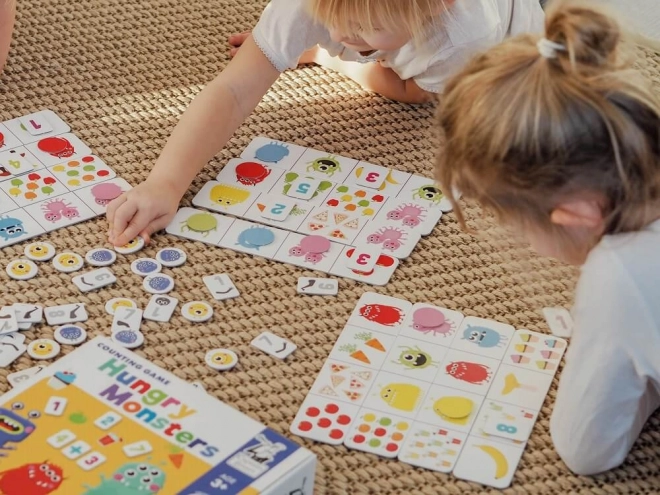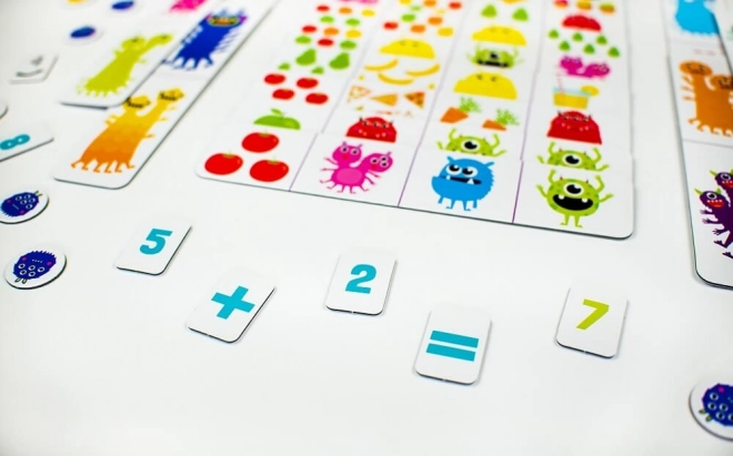 Élvezze az oktató játékot 1-4 játékosnak, amely megtanítja a gyerekeket összeadni és kivonni 10-ig. A játék lényege, hogy szörnyek etetése és gyűjtése színes zsetonokkal történik.