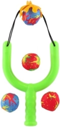A készlet 4 élénk színű vízibombát és egy masszív műanyag parittyát tartalmaz rugalmas kosárral a kényelmes és biztonságos kilövéshez.