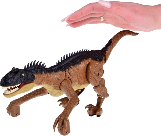 A dinoszaurusz mozgatható ízületekkel van felszerelve és valósághű hangokat ad ki, ami szórakoztató és hiteles játékot nyújt.
