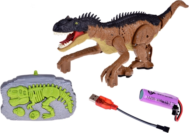 A dinoszaurusz újratölthető akkumulátorral működik, amely a csomag része. A távirányítóhoz 2 darab AA típusú elem szükséges (nem része a csomagnak). A dinoszaurusznak mozgatható végtagjai vannak, ami lehetővé teszi a valósághű mozdulatokat.