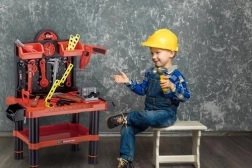 3 éves kortól ajánlott, biztonságos, tartós műanyagból készült, gyerekbarát kivitelben. 52 kiegészítővel a kis barkácsmesterek számára, segít fejleszteni a kreativitást, képzelőerőt és kézügyességet.
