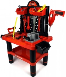 Ez a munkapad számos szórakoztató és hasznos részlettel rendelkezik. Az alsó polc a szerszámok vagy készletek tárolására szolgál, míg a munkafelület lyukakkal rendelkezik a csavarok és csatlakozók rögzítéséhez. Tartalmaz egy satut is, ami elengedhetetlen elem minden "ügyes" fiúnak! A szervezés fontos, így a padnak van rendezőegysége és kijelölt helye minden szerszámhoz.<;/p>