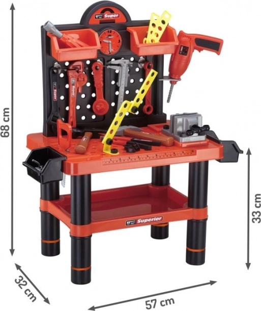Superior gyermek munkapad ideális választás azoknak a gyerekeknek, akik szeretnék utánozni a valódi barkácsolási tevékenységeket. Biztonságos és tartós műanyagból készült, 3 éves kortól gyermekek számára kínál különféle eszközöket és kiegészítőket órákig tartó szórakozás és tanulás céljából.<;/p>