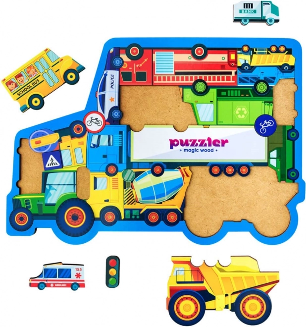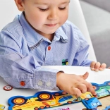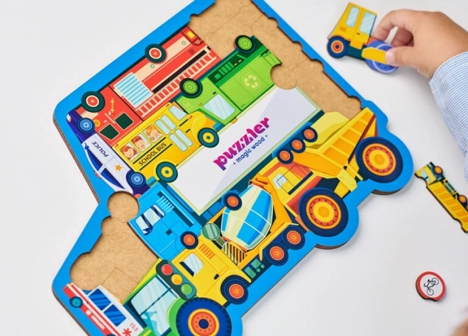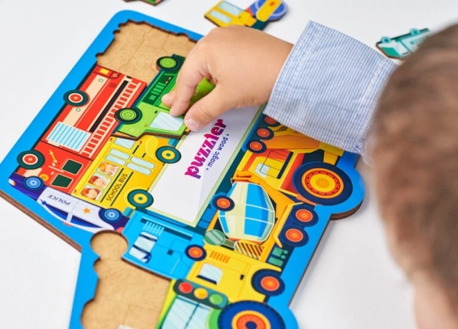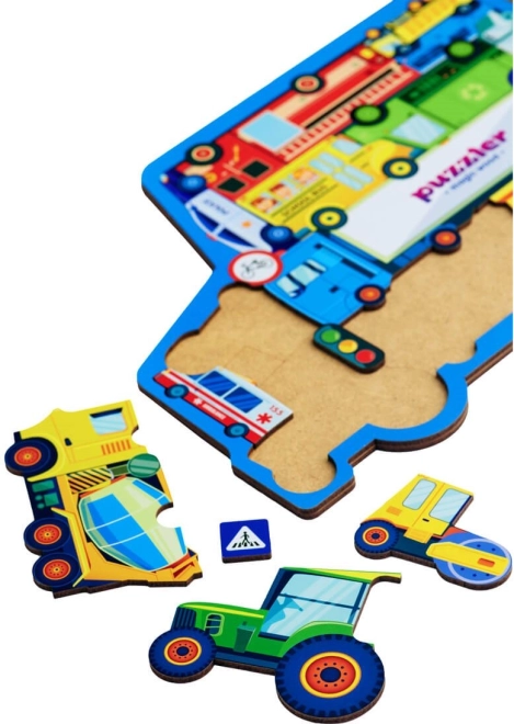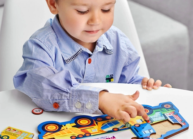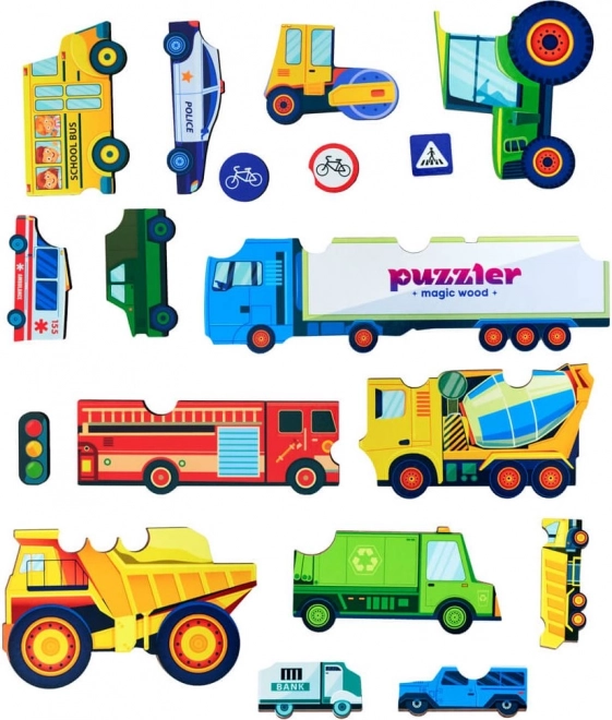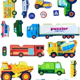Minden darab más-más járművet vagy közlekedési táblát ábrázol, így a gyerekek könnyen sajátítanak el új fogalmakat és bővítik szókincsüket.