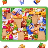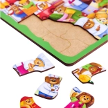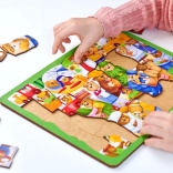 A macis fa puzzle különféle foglalkozások világába vezeti be a gyerekeket – a mentőstől és az orvostól egészen a zenészig. A színes illusztrációknak és a masszív fa kivitelnek köszönhetően egyszerre nyújt szórakozást és támogatja a fontos készségek fejlődését.
