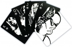 Stílusos játékkártyák STAR WARS motívummal dekoratív fémdobozban – örömet szereznek minden rajongónak és játékosnak. A csomag 54 lapot tartalmaz, köztük 2 jokert, és ideális pókerhez, blackjackhez, rummihoz, kvartetthez, Fekete Péterhez és pasziánszhoz is. Remek otthonra és utazáshoz, 6 éves kortól ajánlott.