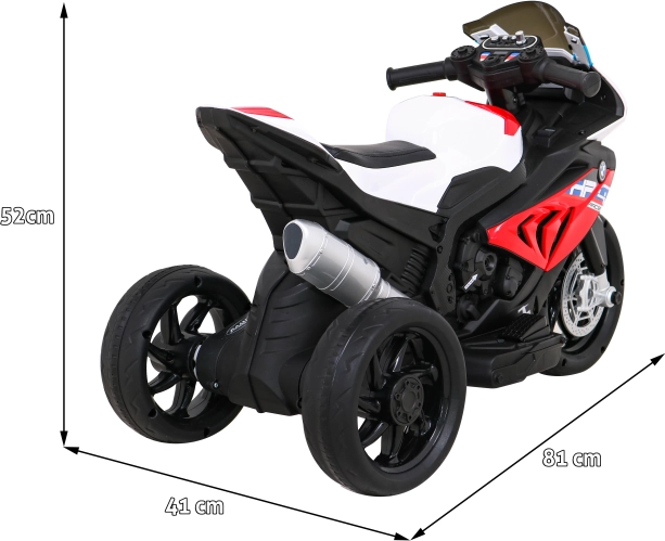 A versenymodell BMW HP4 által ihletett, stílusos gyermekmotor biztonságos közlekedést nyújt 3 keréken, jobb láthatóságot adó LED világítással és kényelmes ökobőr üléssel. Két 2×35 W-os motorja és a 12 V 4,5 Ah-s akkumulátor egyenletes haladást biztosít előre és hátra, két sebességfokozatban. A szórakozást a MP3/AUX/USB és a kormányon található hanggombok fokozzák.