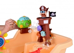 Ez a kalózos víziasztal ideális központja a szabadtéri játékoknak. A gyerekek vízkísérleteket végezhetnek, készíthetnek szivárványos buborékokat, lőhetnek a vízágyúval, és figyelhetik, ahogy a víz megmozgatja a fogaskerekeket és az aranyos állatkákat. Az asztal támogatja a kreativitást, a kíváncsiságot és a szem–kéz koordinációt.