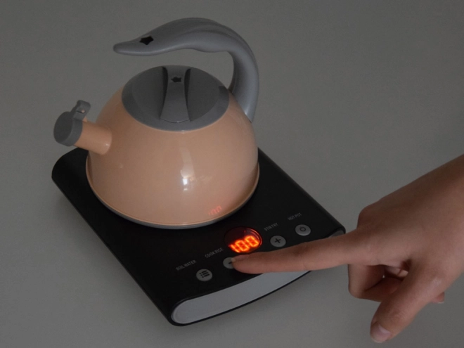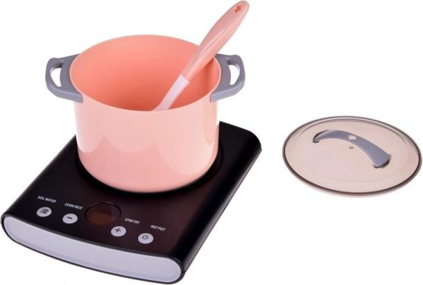 A gomb megnyomásával felgyullad a főzőlap kijelzője, amely lehetővé teszi, hogy a gyerekek gombokkal állítsák a hőmérsékletet. A főzőcske játékot valósághű hangok kísérik, ami még immerszívebbé teszi az élményt. Tanítsd meg a gyerekeknek a főzés és a házimunka alapjait a legszórakoztatóbb módon!