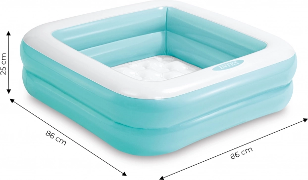 Méretek: 86 x 86 x 25 cm, kapacitás: 57 liter, anyag: PVC (0,25 mm vastagság), súly: 1 kg.