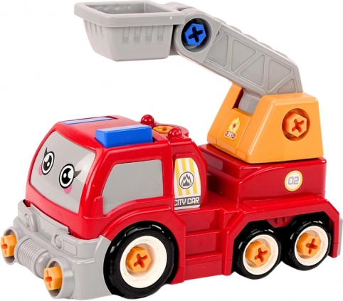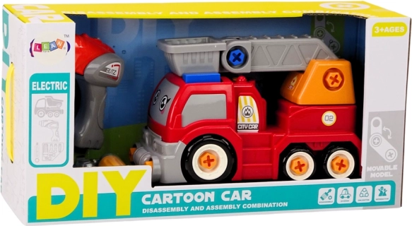 Szórakoztató építőkészlet kis szerelőknek: rajzfilmes, piros teherautó mozgatható daruval, amelyet a gyerekek maguk szétszerelhetnek és összerakhatnak egy elektromos játékfúró segítségével. Fejleszti a finommotorikát, a kreativitást és a logikus gondolkodást, valamint valósághű építkezős játékélményt és hosszú órákon át tartó szórakozást kínál.