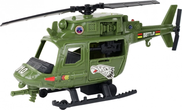 Teljes katonai készlet gyerekeknek, amely órákon át tartó akciódús szórakozást nyújt és támogatja a kreatív játékot. Tartalmaz helikoptert, harcjárművet, irányítótornyot és egy katona figurát. A helikopter fény- és hangeffektekkel rendelkezik, a részletgazdag kidolgozás realista hatást kelt, az elemek pedig szabadon kombinálhatók egyéni küldetésekhez.