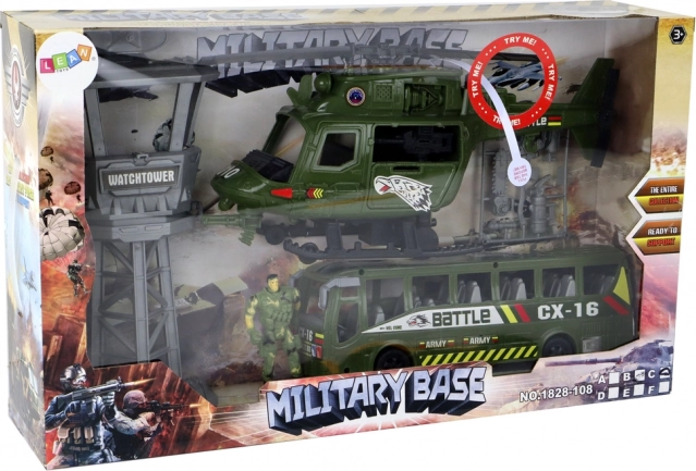 Katonai szett helikopterrel, harcjárművel, irányítótoronnyal és katona figurával