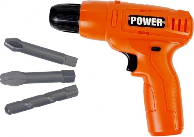 Könnyű műanyag fúró cserélhető fúrófejekkel, amely jól illik a kis kézbe, és segíti a csavarozás és szerelés gyakorlását. Ideális szerepjátékhoz a kis barkácsolóknak.