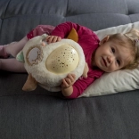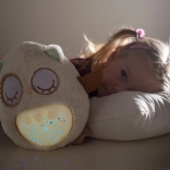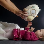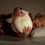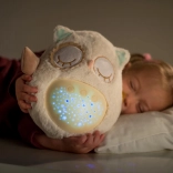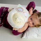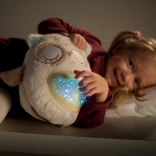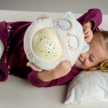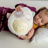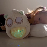 Ez a pihe-puha plüss alvókás a meleg ölelést okos altató funkciókkal ötvözi. A bagoly 8 színben vetíti a csillagos égboltot, 8 altatódalt és megnyugtató prenatális hangokat játszik le, amelyeket a legkisebbek az édesanya pocakjából ismerősnek éreznek. A dallam lejátszása után még körülbelül egy percig finoman világít, majd automatikusan kikapcsol.