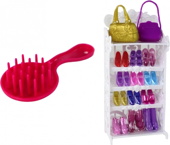 A csomagban található egy szekrény 12 pár cipővel és két táskával, amelyek változatos játékot és stylingot tesznek lehetővé.