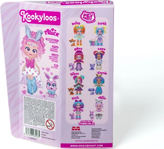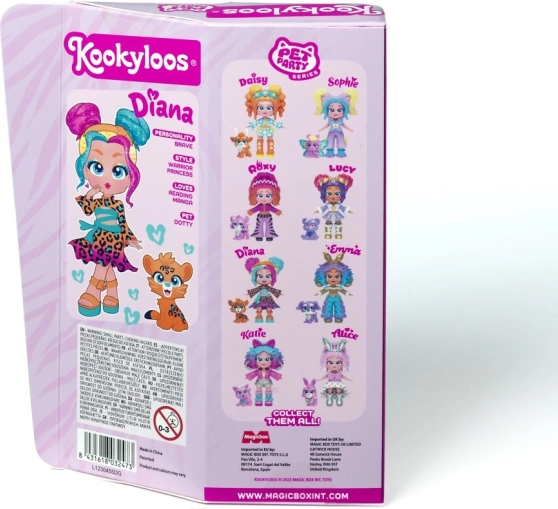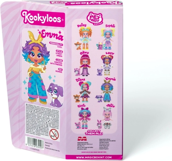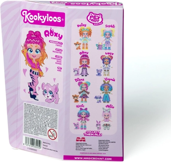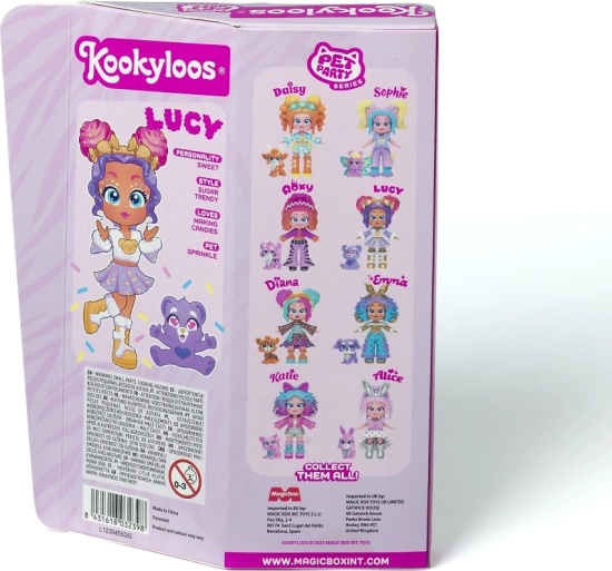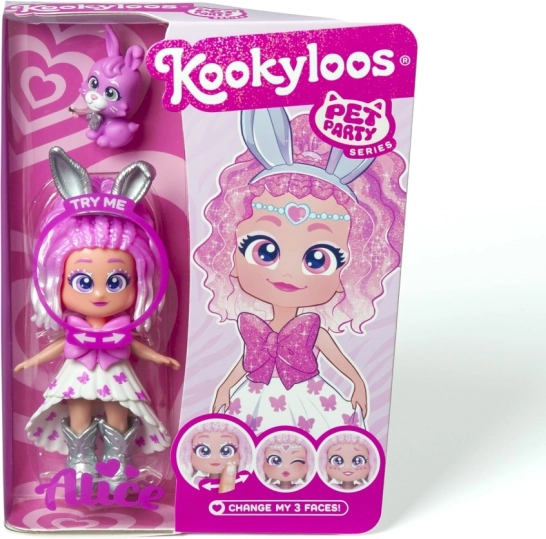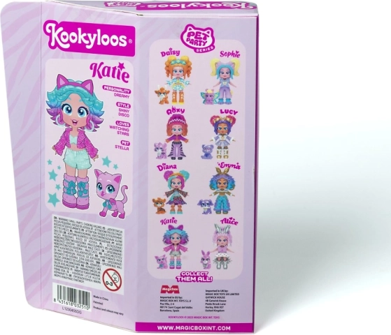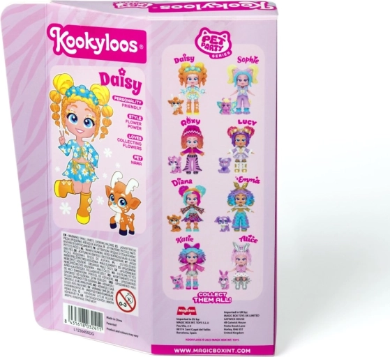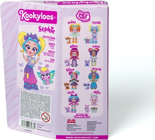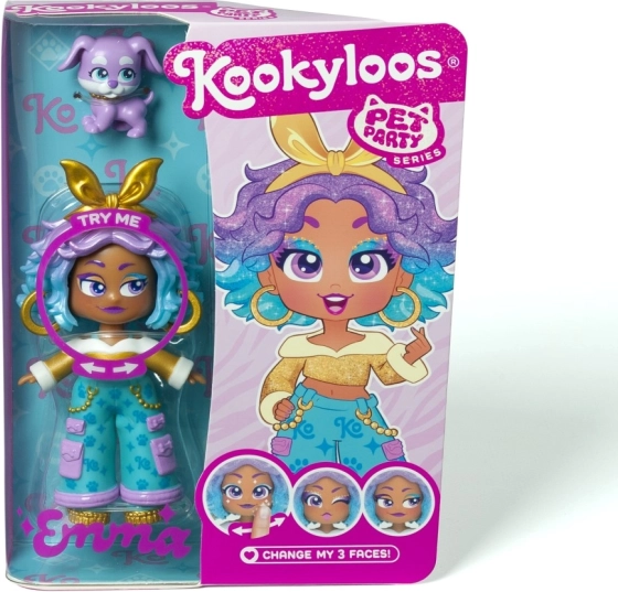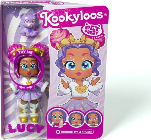 Ismerje meg Lucyt, Sophie-t, Katie-t, Roxy-t, Alice-t, Daisyt, Dianát és Emmát – a KOOKYLOOS Pet Party sorozat sztárjait. Minden baba egyedi stílussal, gyöngyházfényű öltözékkel és egy kis állatkával érkezik, amely kiemeli személyiségét. Az okos mechanizmusnak köszönhetően egyetlen kattintás, és a baba megváltoztatja arckifejezését – ez a móka sosem unalmas.