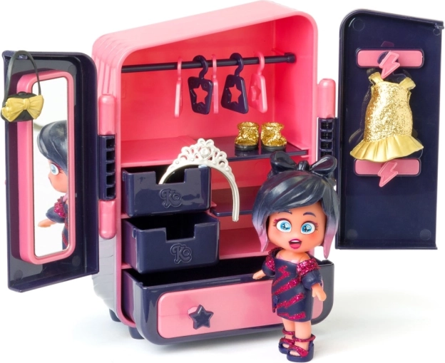 Ava baba csillogó öltözékei részei a csomagolásnak. Az öltöző, amely a játékkészlet része, praktikus szekrényt kínál a ruhák és kiegészítők tárolására. Ez a készlet széles lehetőségeket kínál kreatív és fantáziadús játékhoz.